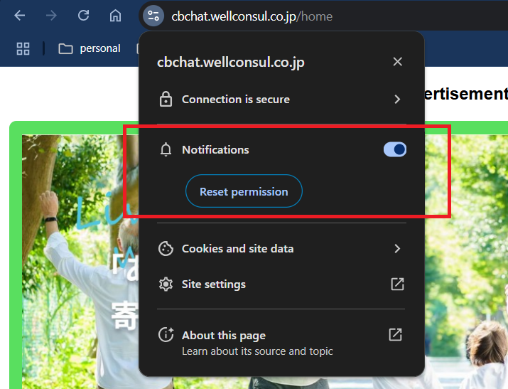 To prevent abuse, web pages by default do not have the right to pop up such notification messages. Unless the user has accepted or manually blocked the notification, the website will prompt user to turn notifications on for the website every time the chat function is visited.