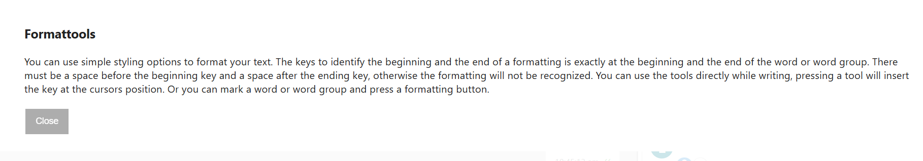 Help: Provides help information about the formatting tools.